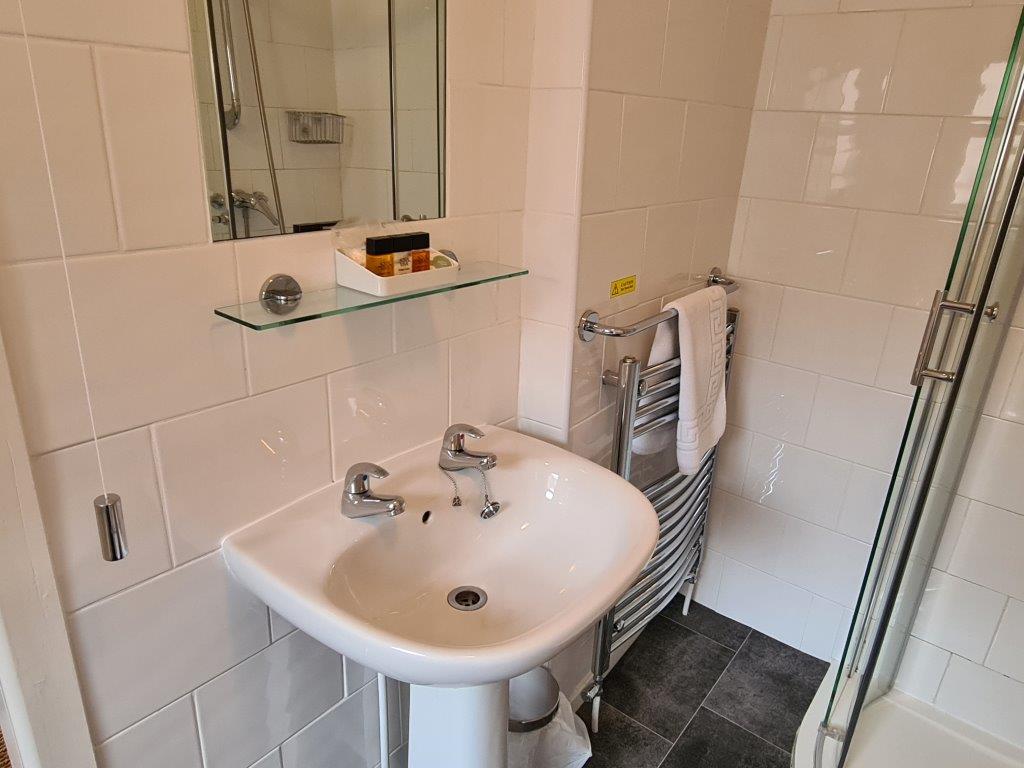 • En-suite bathroom with shower and towel radiator.